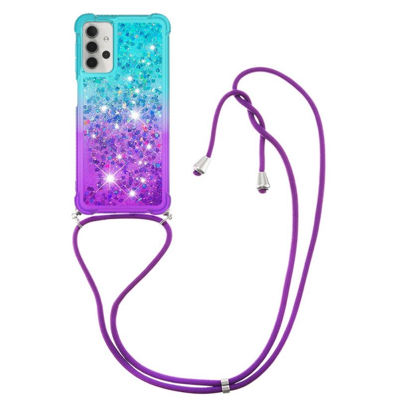 Wspaniałe, brokatowe etui z silikonu z praktycznym sznurkiem do zabezpieczania telefonu Samsung Galaxy A32 5G w doskonały sposób.
