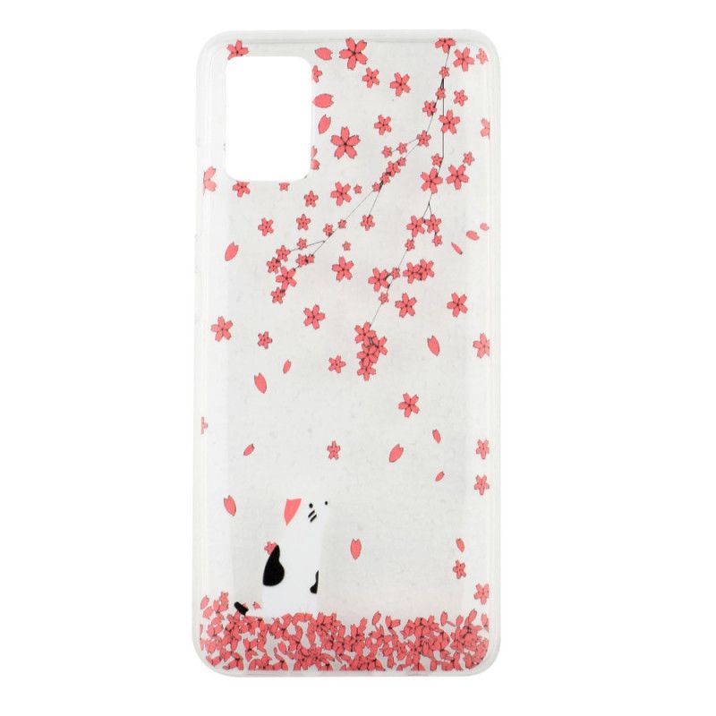 Twój Samsung Galaxy A51, ozdobiony płatkami spadającymi na kota, dzięki temu wyjątkowemu i kwiecistemu etui!