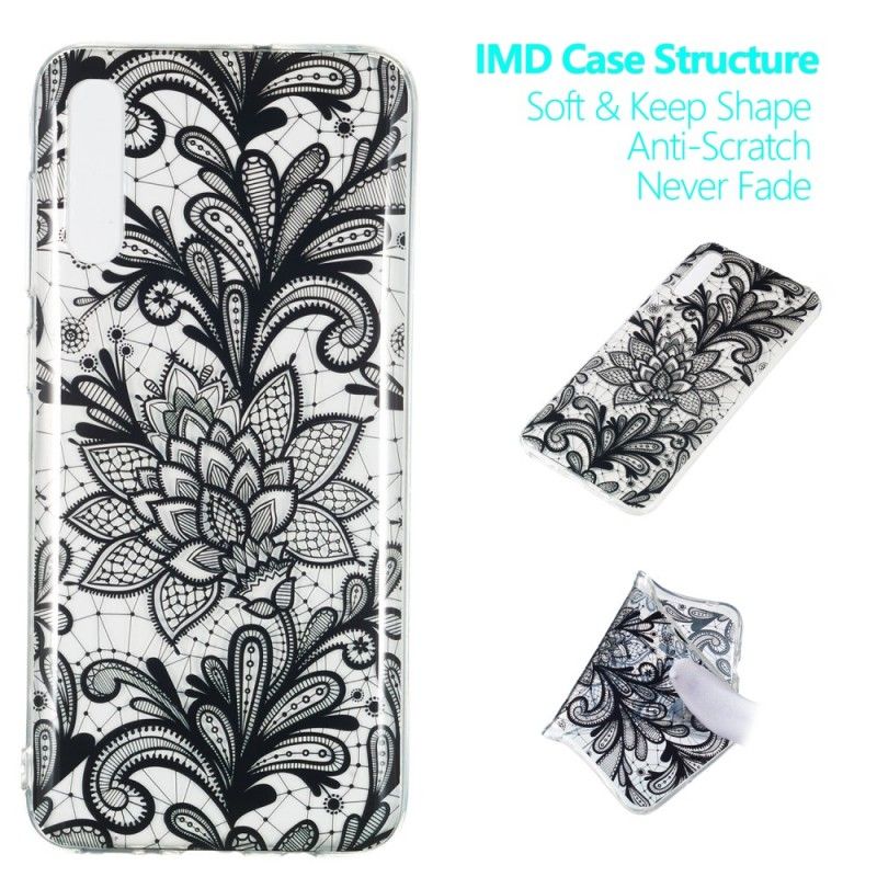 Doskonały pokrowiec na Samsung Galaxy A70 składa się z kwiatka umieszczonego w cienkiej czarnej koronce!