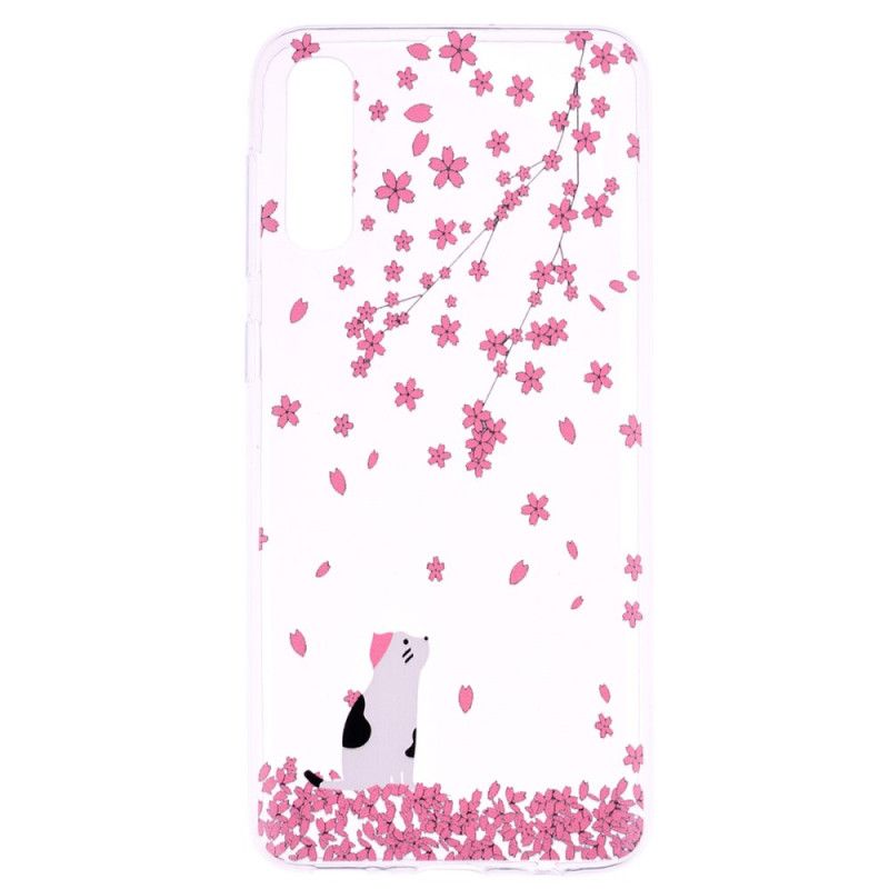 Chroń i ozdabiaj swojego Samsunga Galaxy A70 tym przezroczystym silikonowym etui Petals and Cat.