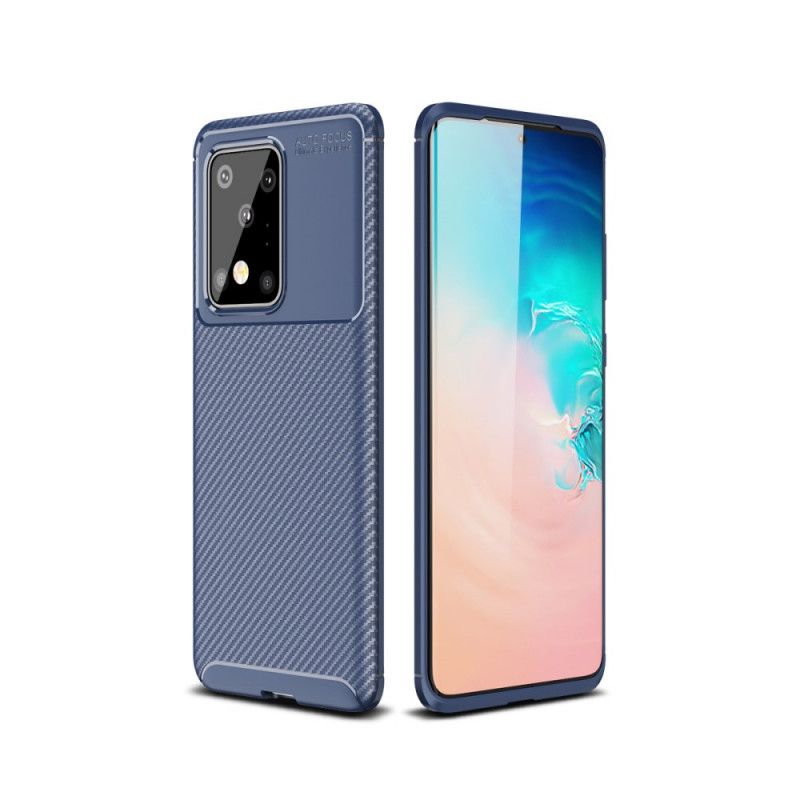Etui Samsung Galaxy S20 Ultra Granatowy Czarny Elastyczna Tekstura Włókna Węglowego