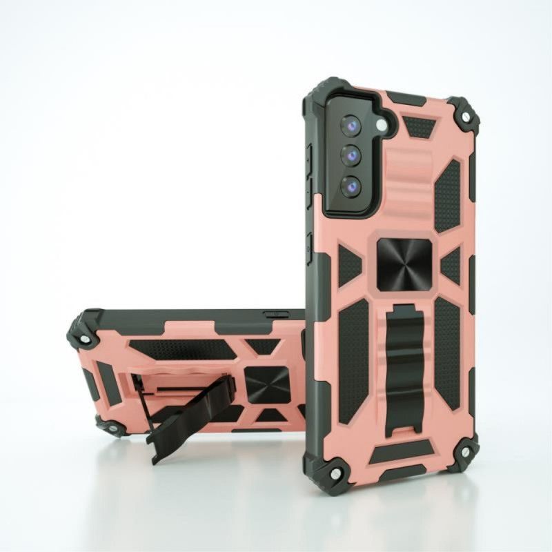 Niezwykle odporne dwukolorowe hybrydowe etui z wyjmowanym uchwytem do zabezpieczenia telefonu Samsung Galaxy S21.