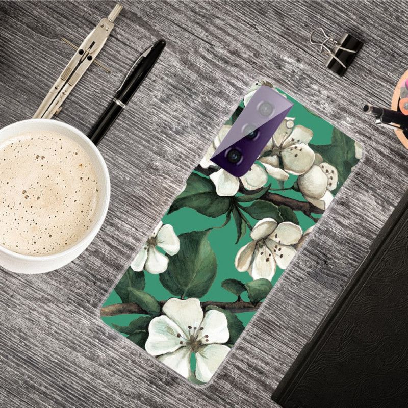 Etui Samsung Galaxy S21 Plus 5G Pomalowane Białe Kwiaty Etui Ochronne