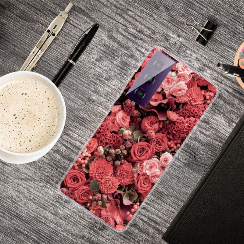 Etui Samsung Galaxy S21 Plus 5G Różowy Czerwony Intensywne Kwiaty Etui Ochronne