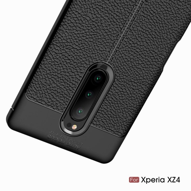 Etui Sony Xperia 1 Szary Czarny Efekt Skóry Z Podwójną Linią Liczi