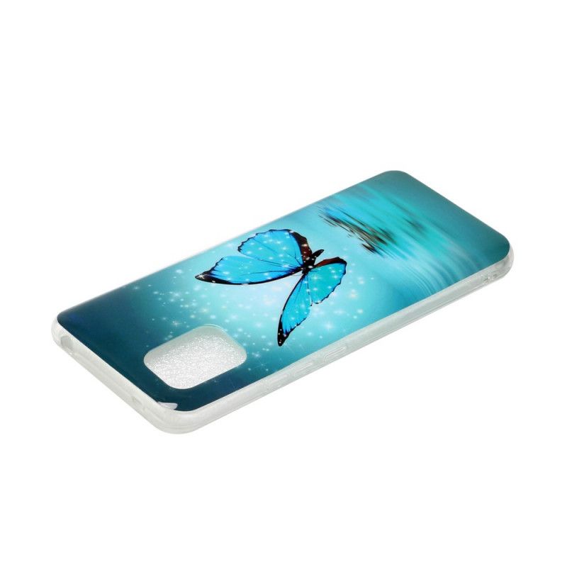 Etui Xiaomi Mi 10 Lite Fluorescencyjny Niebieski Motyl Etui Ochronne