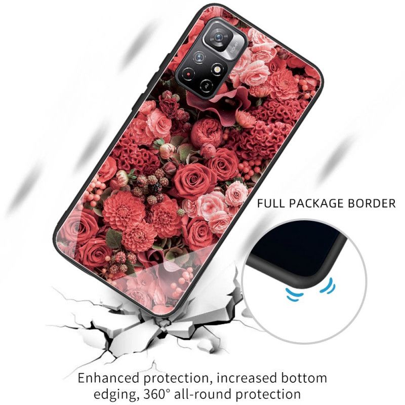 Twój Xiaomi Redmi Note 11 / Poco M4 Pro 5G jest bardzo dobrze zabezpieczony dzięki etui Rose Flowers ze szkła hartowanego (tył) i silikonu (krawędzie).