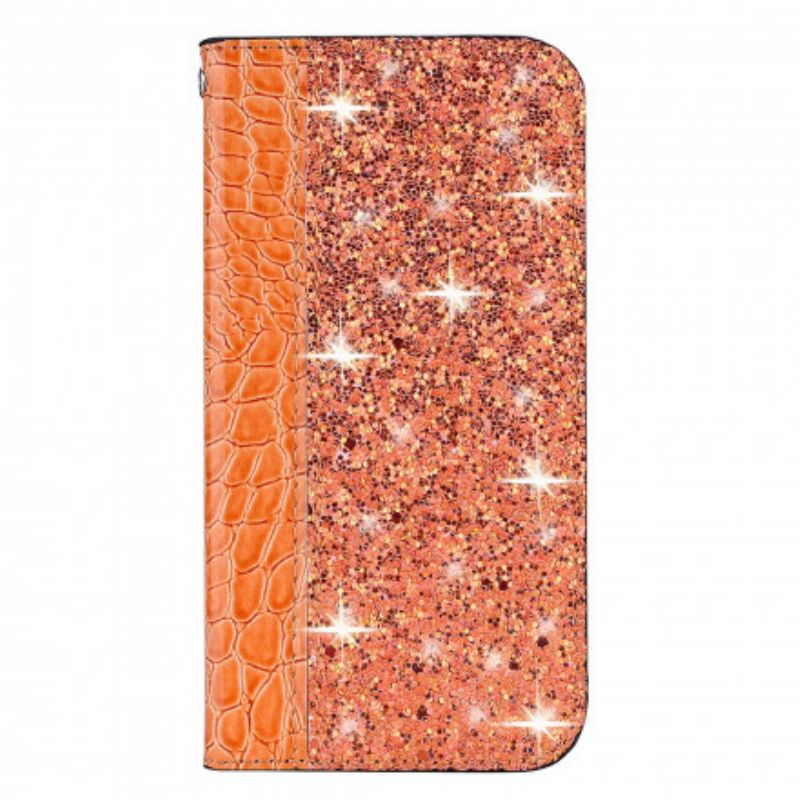 Flip Kotelot Do Iphone 13 Skóra Krokodyla I Efekt Brokatu