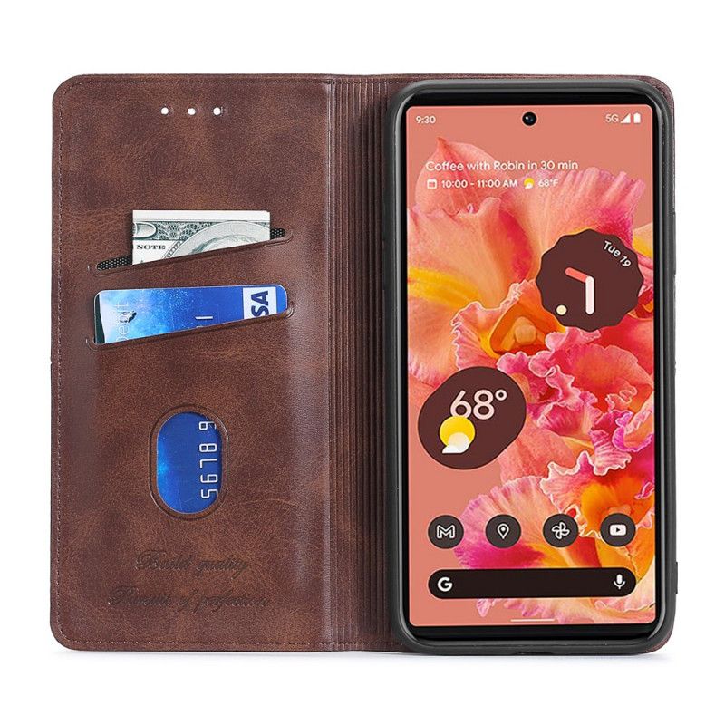 Twój Google Pixel 6 jest bardzo dobrze chroniony dzięki skórzanemu etui z odsłoniętymi szwami, które służy również jako portfel.
