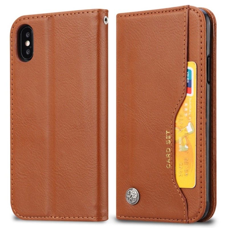 Flip Kotelot Huawei Y5 2019 Brązowy Czarny Etui Na Karty Ze Sztucznej Skóry