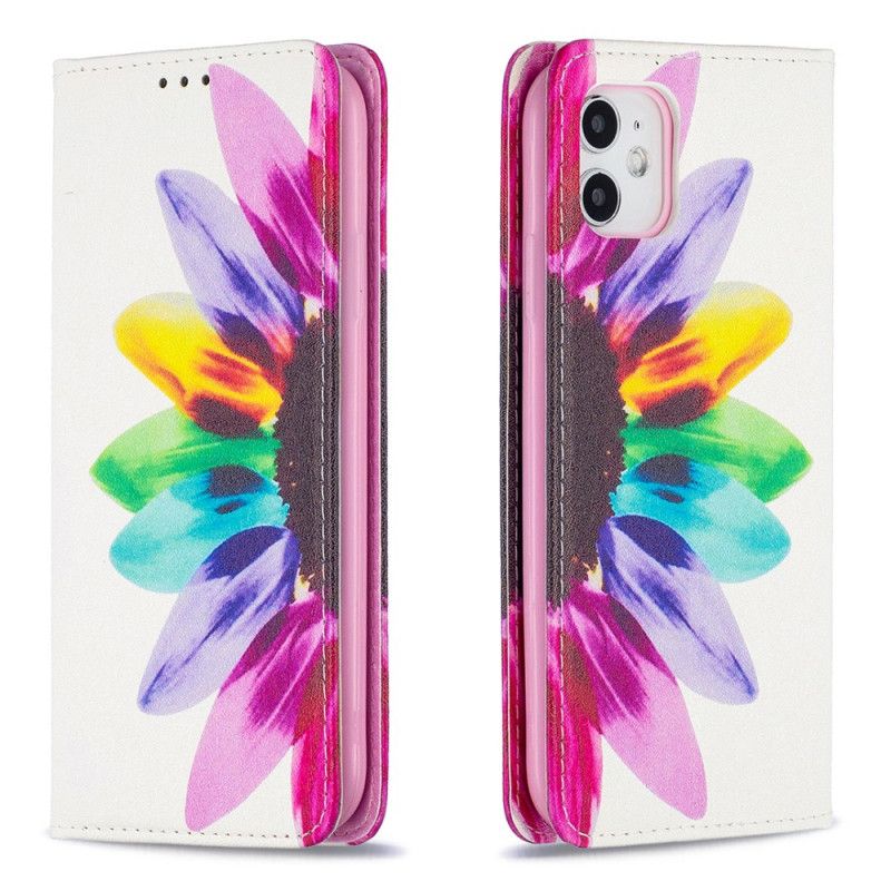 Twoje iPhone 11 jest doskonale chroniony przez klapkę ozdobioną pięknym kolorowym kwiatkiem.