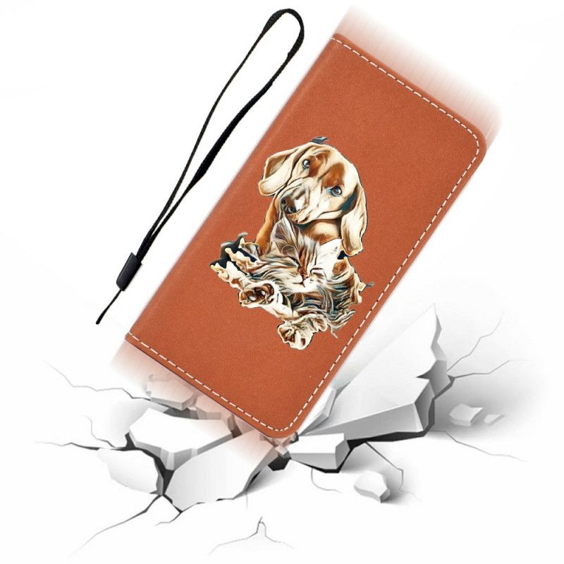 Zaprojektowane z imitacji skóry etui Dog and Cat do iPhone'a 12 Pro Max służy jako portfel i wyróżnia się oryginalnością.
