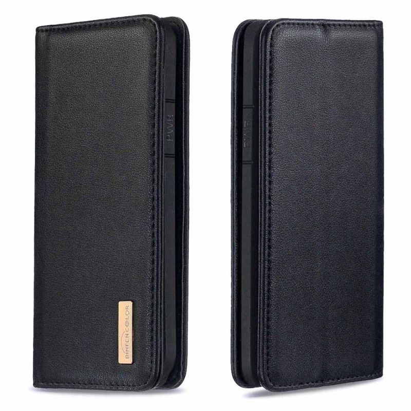 Flip Kotelot iPhone XS Max Granatowy Czarny Zdejmowana Skorupa Z Prawdziwej Skóry Etui Ochronne