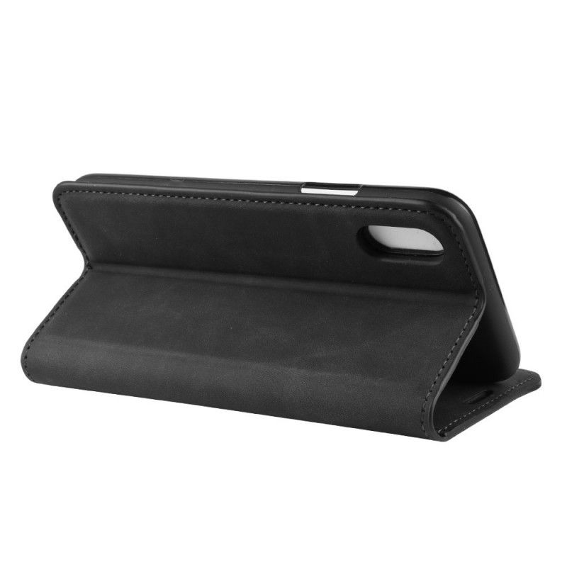 Flip Kotelot iPhone XS Max Szary Czarny Jedwabisty W Dotyku Efekt Skóry