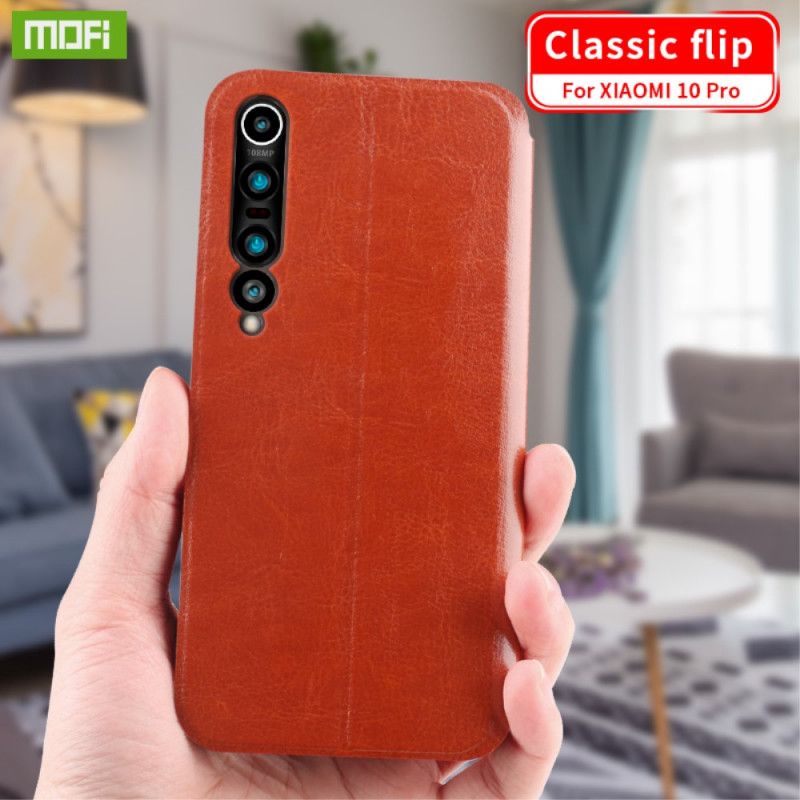 Flip Cover w stylu MOFI, z imitacji skóry Premium, umiejętnie i precyzyjnie zabezpiecza Xiaomi Mi 10/10 Pro na co dzień.