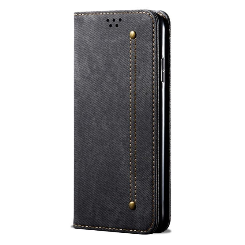 Flip Kotelot Xiaomi Redmi Note 9 5G / Note 9T 5G Granatowy Czarny Etui na Telefon Tkanina Dżinsowa