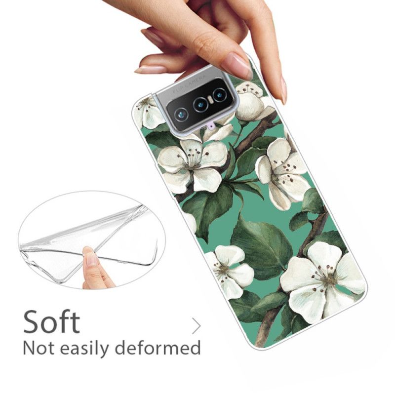 Futerały Asus Zenfone 7 / 7 Pro Etui na Telefon Pomalowane Białe Kwiaty