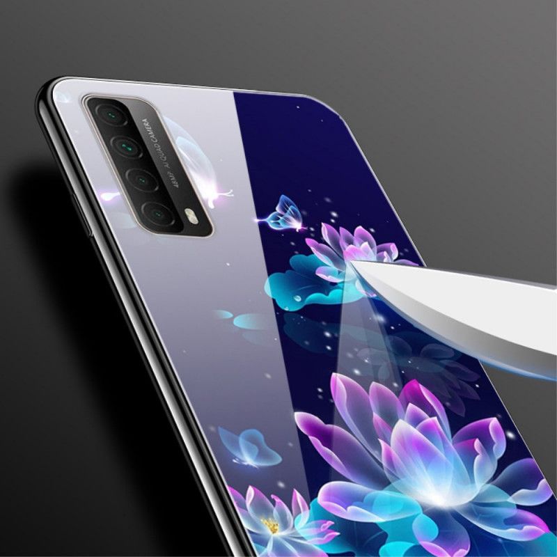 Futerały Huawei P Smart 2021 Granatowy Ciemnoniebieski Ozdobne Kwiaty Ze Szkła Hartowanego