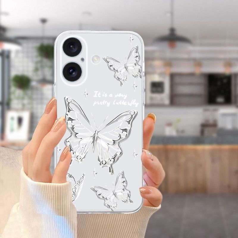 Chroń Swojego Iphone'A 16 W Dobrym Stylu Dzięki Naszemu Etui Z Przezroczystymi Krawędziami I Wzorem Motyla.