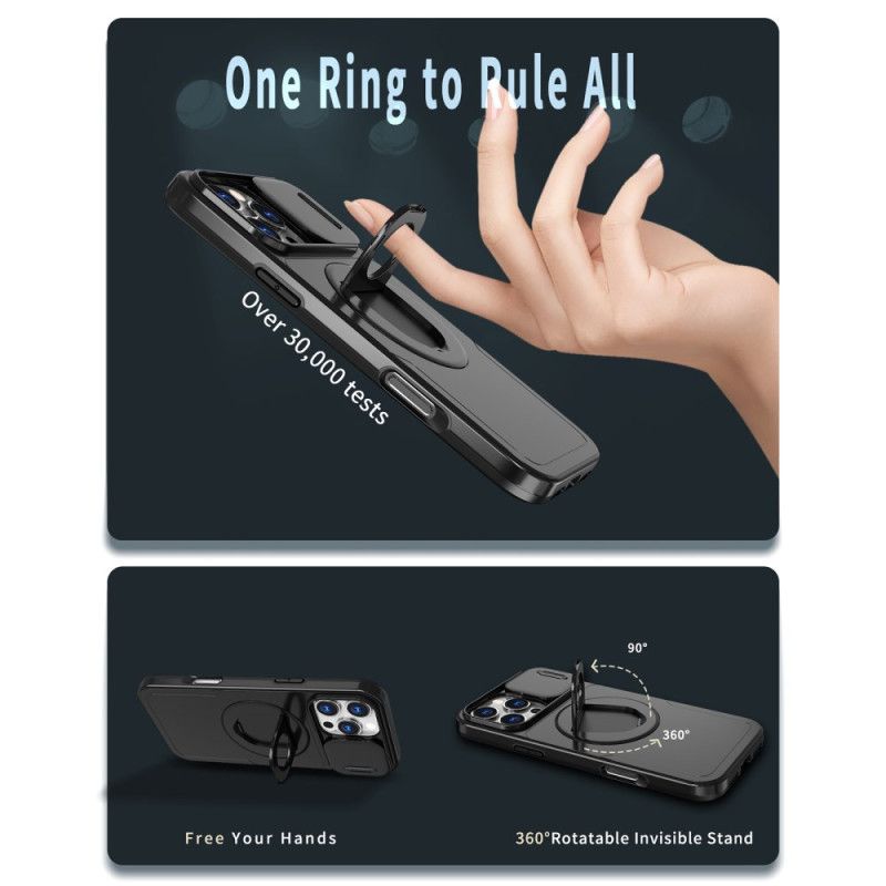 Futerały iPhone 16 Pro Etui Na Telefon Magnetyczny Pierścień Podtrzymujący I Przesuwana Osłona Obiektywu