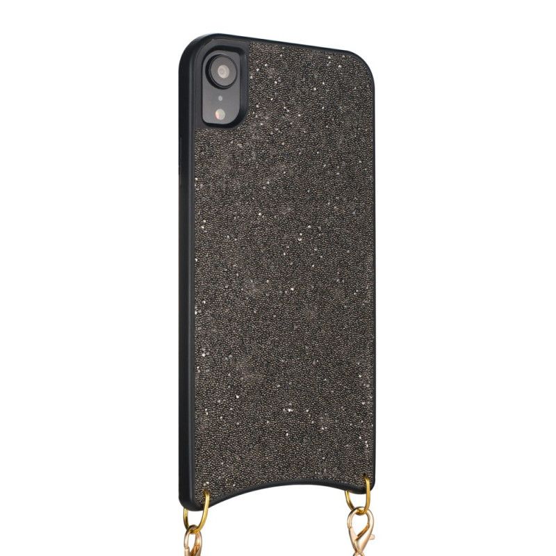 Etui na iPhone XR wypełnione kolorowymi cekinami, z praktycznym i zabawnym łańcuszkiem.