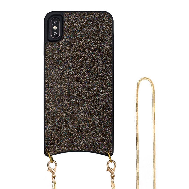 Etui do iPhone'a XS Max wypełnione kolorowymi cekinami z praktycznym i zabawnym łańcuszkiem.