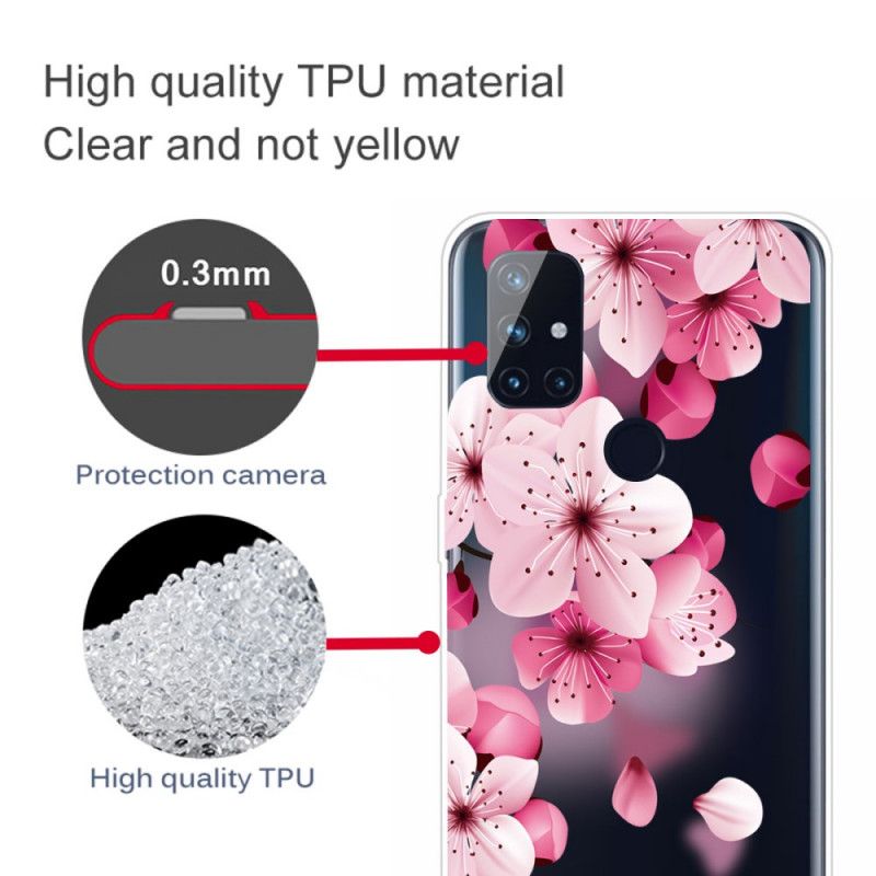 Muszla z małymi różowymi kwiatkami, która chroni telefon OnePlus Nord N100 przy zachowaniu jego oryginalnego wyglądu.