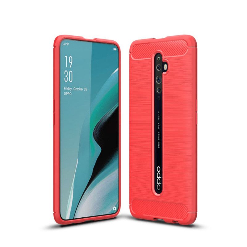 Futerały Oppo Reno 2Z Czerwony Czarny Etui na Telefon Szczotkowane Włókno Węglowe