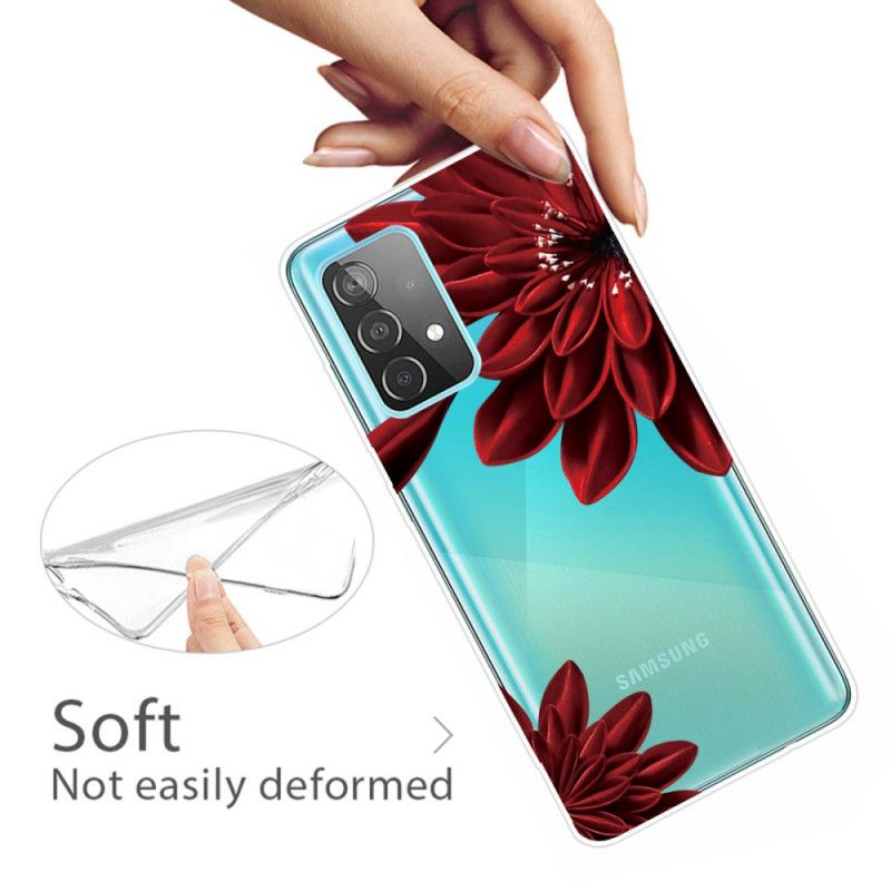 Etui ozdobione dzikimi kwiatami, które komponują się z drobne krzywizny telefonu Samsung Galaxy A32 5G.