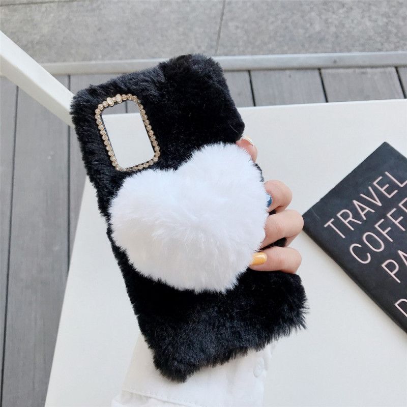 Futerały Samsung Galaxy Note 20 Ultra Biały Czarny Futro W Kształcie Serca