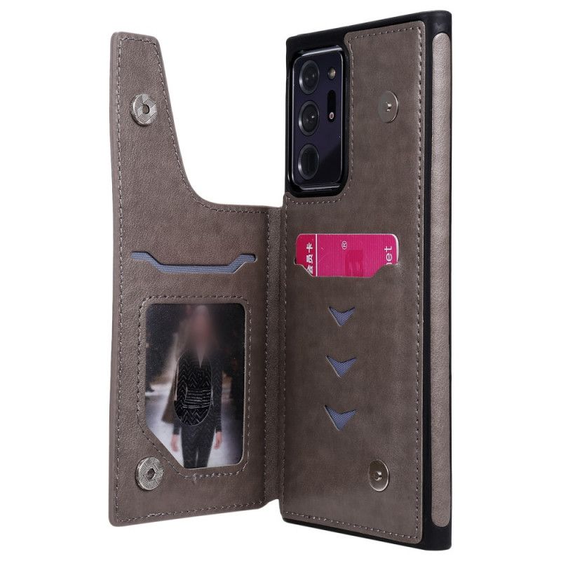 Twój Samsung Galaxy Note 20 Ultra jest chroniony w sposób wielofunkcyjny dzięki powłoce z imitacji skóry Cat Impression wyposażonej w uchwyt na kartę, który służy jako podpórka.