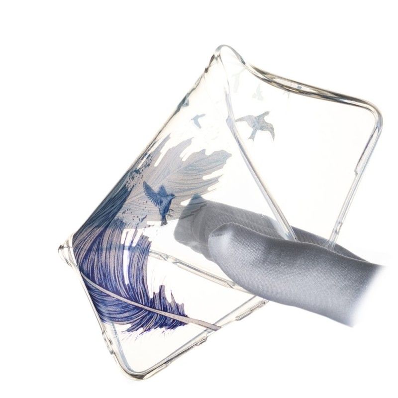 Ta obudowa jest przezroczysta, z wzorem z jasnych piór, równie estetyczny, co wytrzymały, jest przeznaczony do telefonu Samsung Galaxy S10.