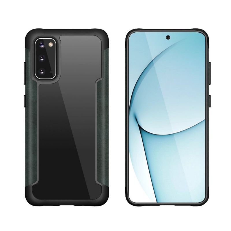Doskonała powłoka z imitacji skóry, która łączy w sobie ochronę ściętego zderzaka i przezroczystość z tyłu telefonu Samsung Galaxy S20, aby zachować piękno telefonu komórkowego.
