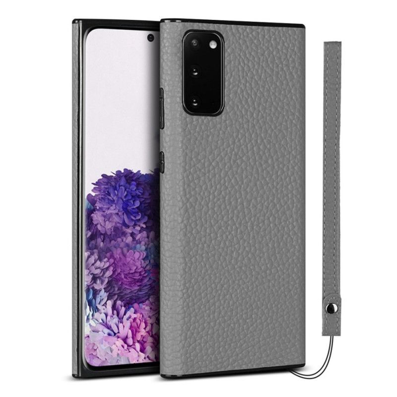 Wspaniałe etui z prawdziwej skóry liczi z paskiem do eleganckiego zabezpieczenia Samsunga Galaxy S20.