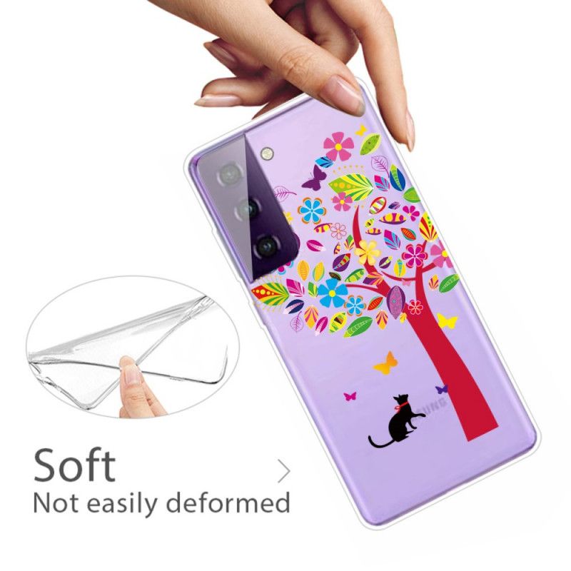 Przezroczyste etui Cat under the Tree, wykonane z elastycznego silikonu, jest idealne do zabezpieczenia Samsunga Galaxy S21 Plus 5G dla miłośników kotów.