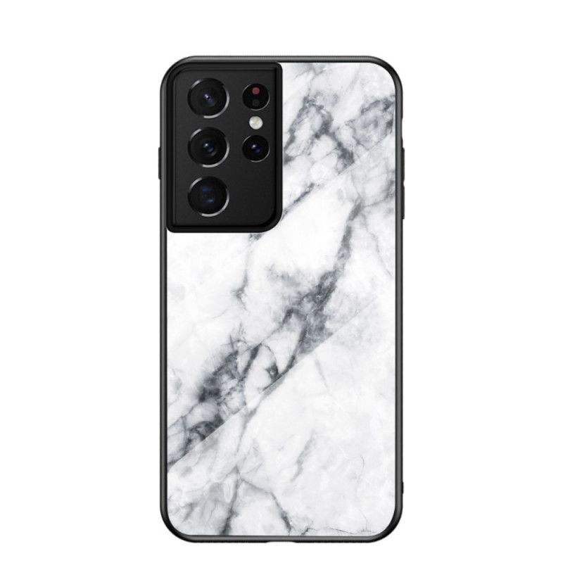 Futerały Samsung Galaxy S21 Ultra 5G Biały Czarny Etui na Telefon Szkło Hartowane W Kolorze Marmuru