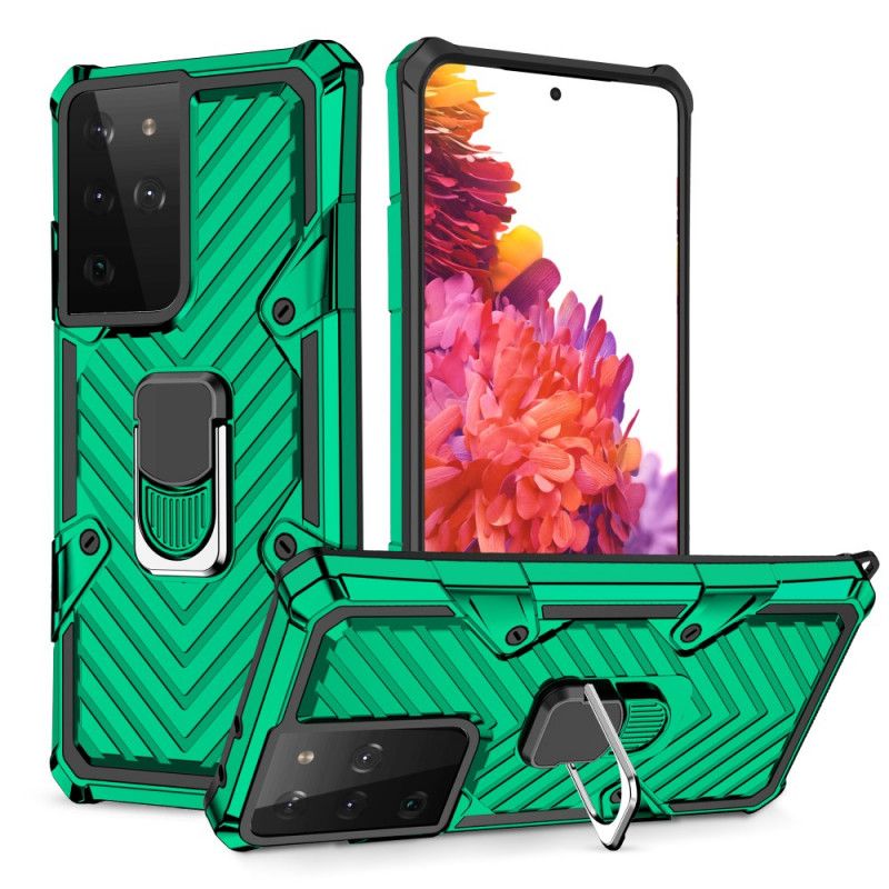 Zdejmowana, niezwykle wytrzymała obudowa do telefonu Samsung Galaxy S21 Ultra 5G z pierścieniem, który można używany jako wsparcie dla przyjemnego i bezpiecznego użytkowania.