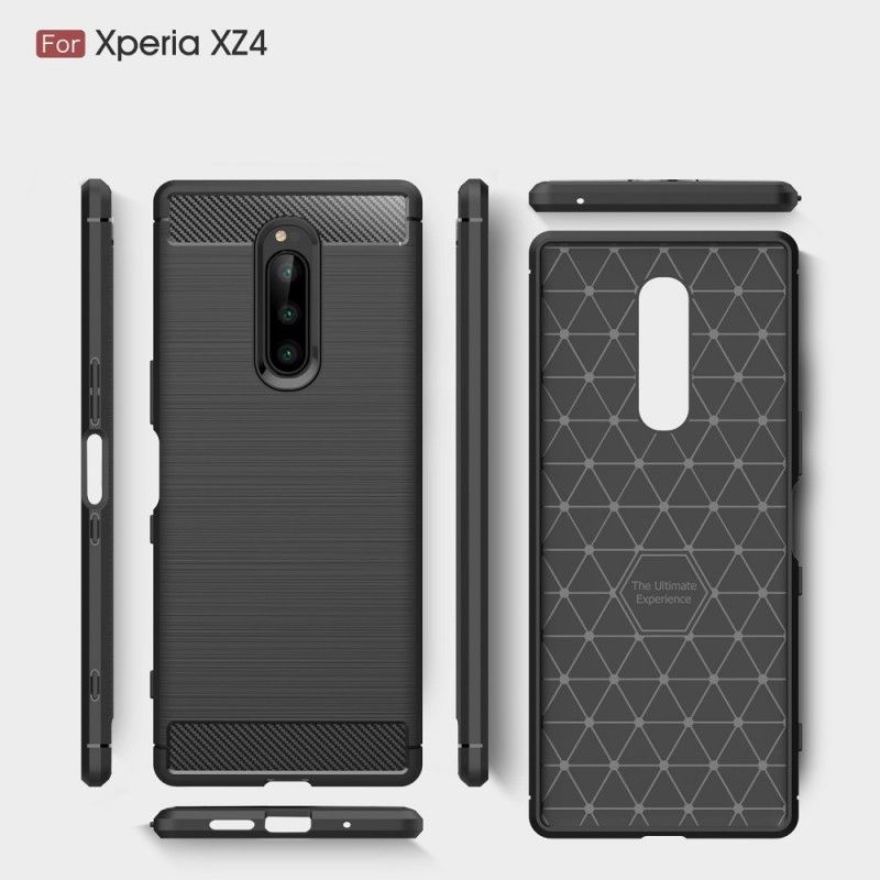 Futerały Sony Xperia 1 Szary Czarny Etui na Telefon Szczotkowane Włókno Węglowe