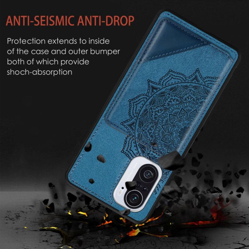 Twój Poco F3 / Xiaomi Mi 11i 5G jest chroniony w sposób wielofunkcyjny dzięki temu etui z imitacji skóry Mandala wyposażonemu w uchwyt na kartę, który służy jako podpórka.