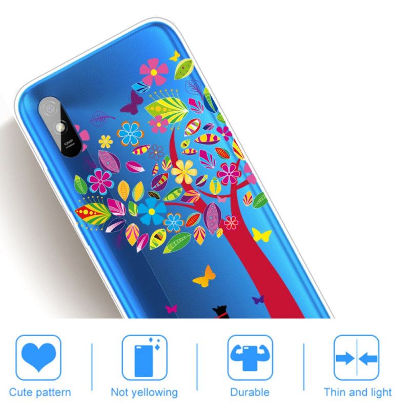 The przezroczysty futerał Cat under the Colourful Tree, wykonany z elastycznego silikonu, jest idealny do zabezpieczenia Xiaomi Redmi 9A dla miłośników kotów.