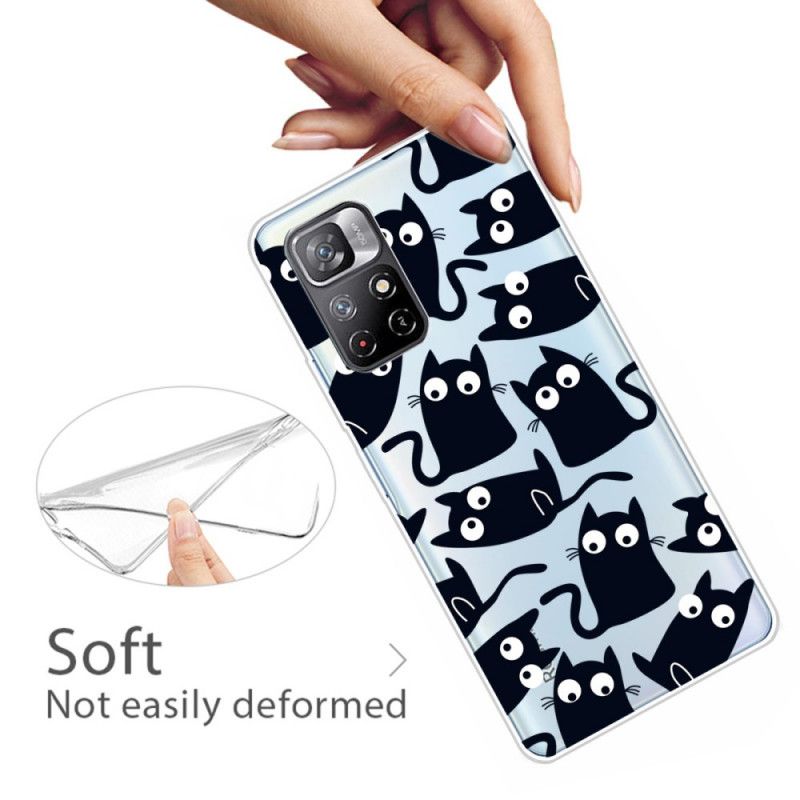 Przezroczysty futerał z wieloma czarnymi kotami jest idealny do ochrony telefonu Xiaomi Redmi Note 11 / Poco M4 Pro 5G z oryginalnością.