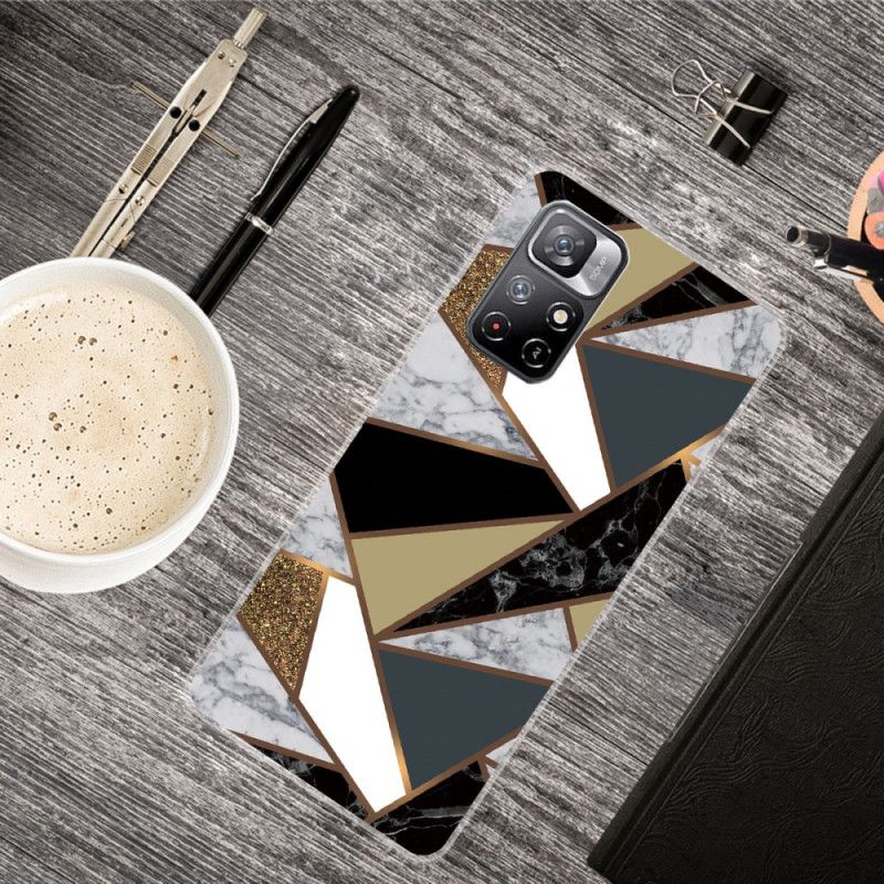 Eleganckie etui z kolorową geometrią, przypominające marmur, specjalnie zaprojektowane do telefonu Xiaomi Redmi Note 11 / Poco M4 Pro 5G.