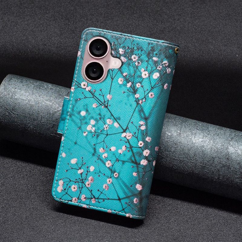 Obudowa iPhone 16 Plus Etui Na Telefon Portfel W Kwiaty Śliwy Z Paskiem