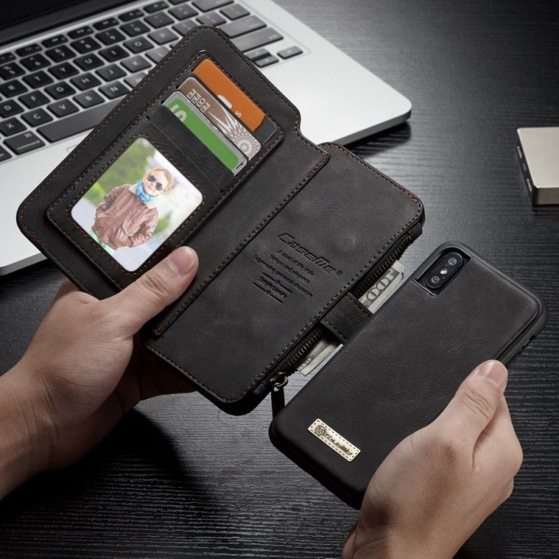 Etui z imitacji skóry do iPhone'a XS Max zapewnia optymalną ochronę z portfelem, a skorupa odpada.