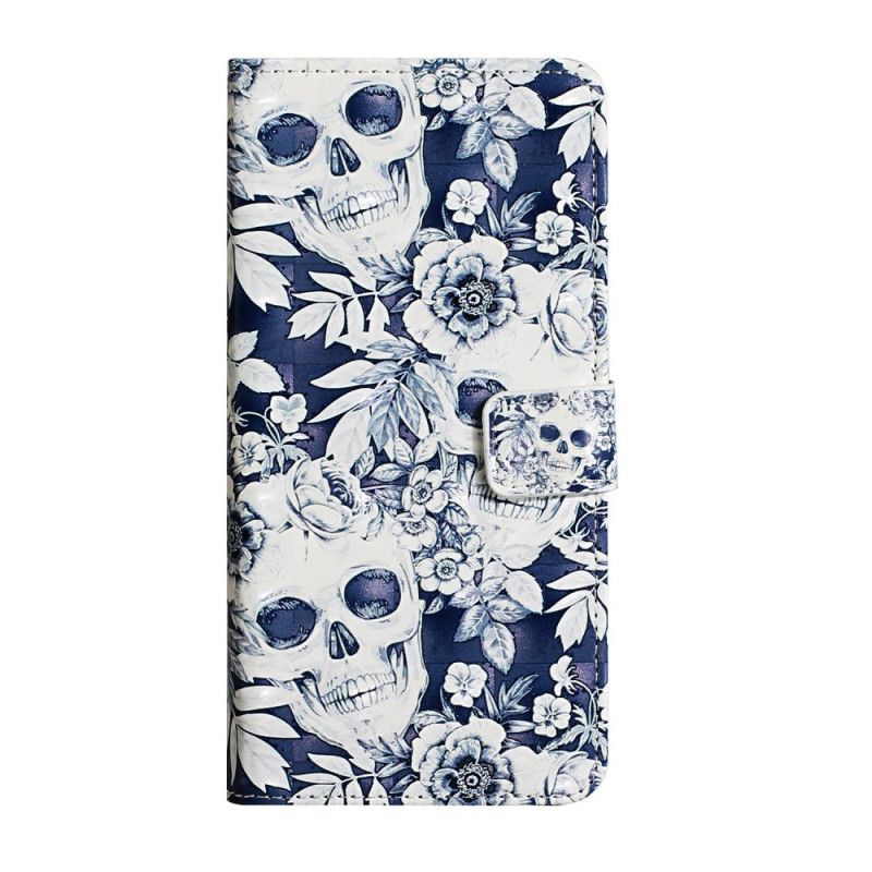 Niebieskie etui, na którym narysowane są czaszki otoczone kwiatami: idealnie pasuje do Twojego Xiaomi Mi Note 10 Lite.