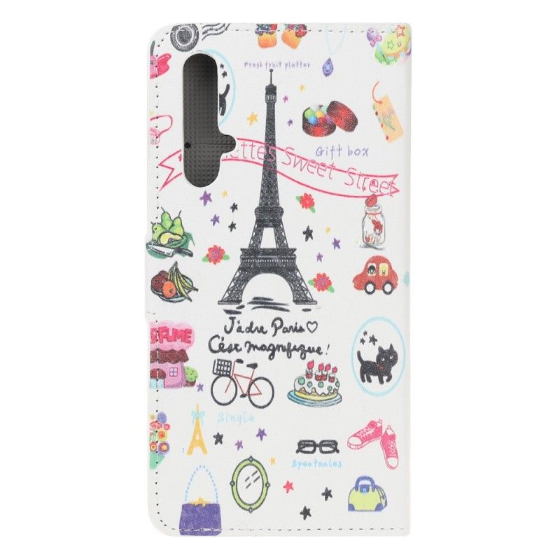 Pokrowiec J'Adore Paris optymalnie zabezpiecza Honor 20 / Huawei Nova 5T na co dzień, a także służy jako zestaw głośnomówiący i portfel.