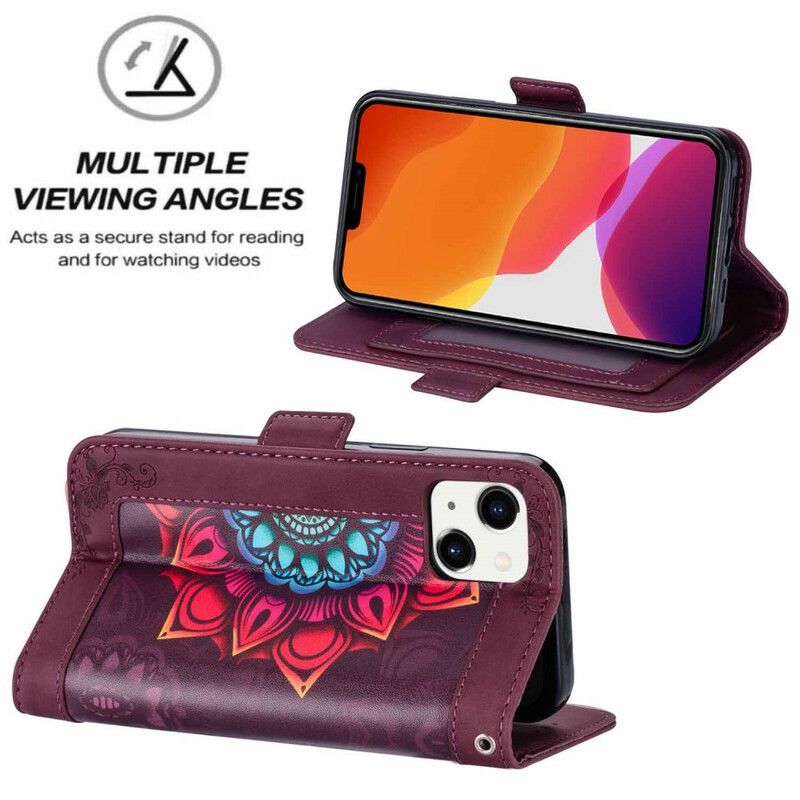 Chroń swojego iPhone'a 13 za pomocą tego etui Mandala Decoration z paskiem, który służy również jako portfel.