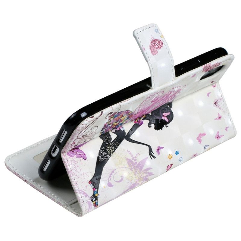 Etui Magic Fairy bezpiecznie zabezpiecza iPhone'a XR wokół silikonowego etui, służąc jednocześnie jako portfel i wsparcie bez użycia rąk.