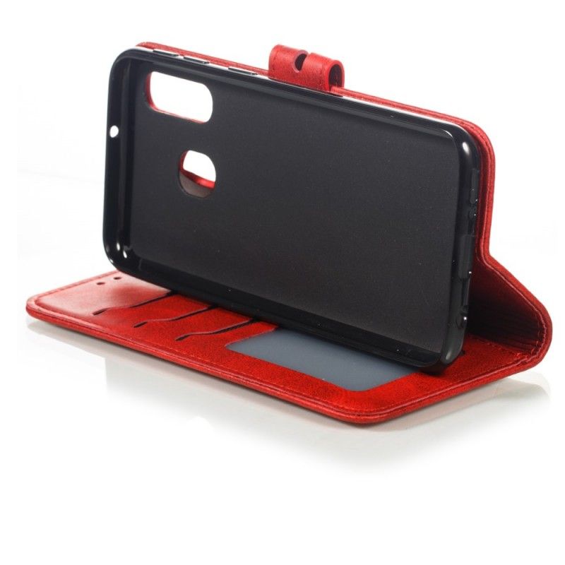 Pokrowce Samsung Galaxy A40 Czerwony Szary Imitacja Skóry Dla Kota
