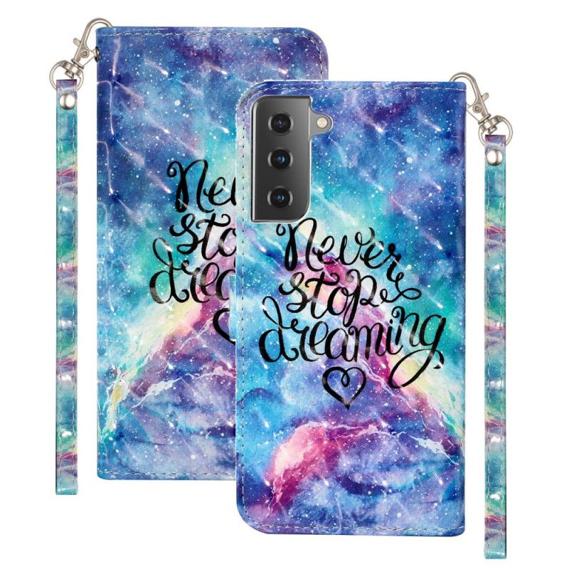 Twój Samsung Galaxy S21 5G jest bardzo dobrze zabezpieczony dzięki temu etui ze sztucznej skóry Light Spot Never Stop Dreaming, które jest dostarczane ze smyczą.